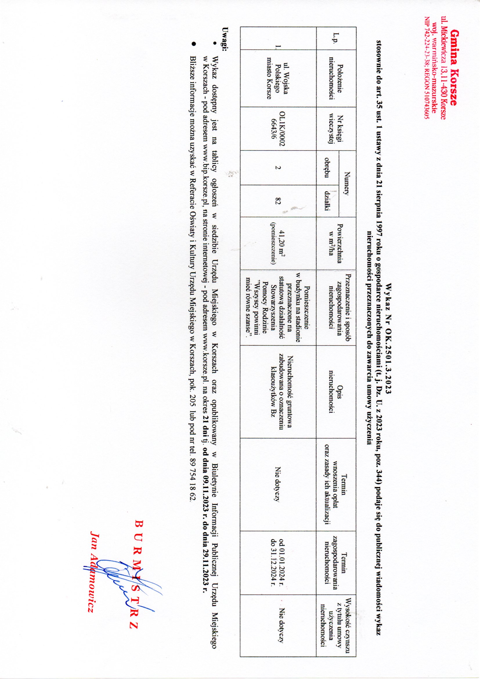 Piotr Sańko) - Dodanie załącznika [ok250132023_wykaz_nieruchomosci.jpg] do dokumentu. (Dokument opublikowany)